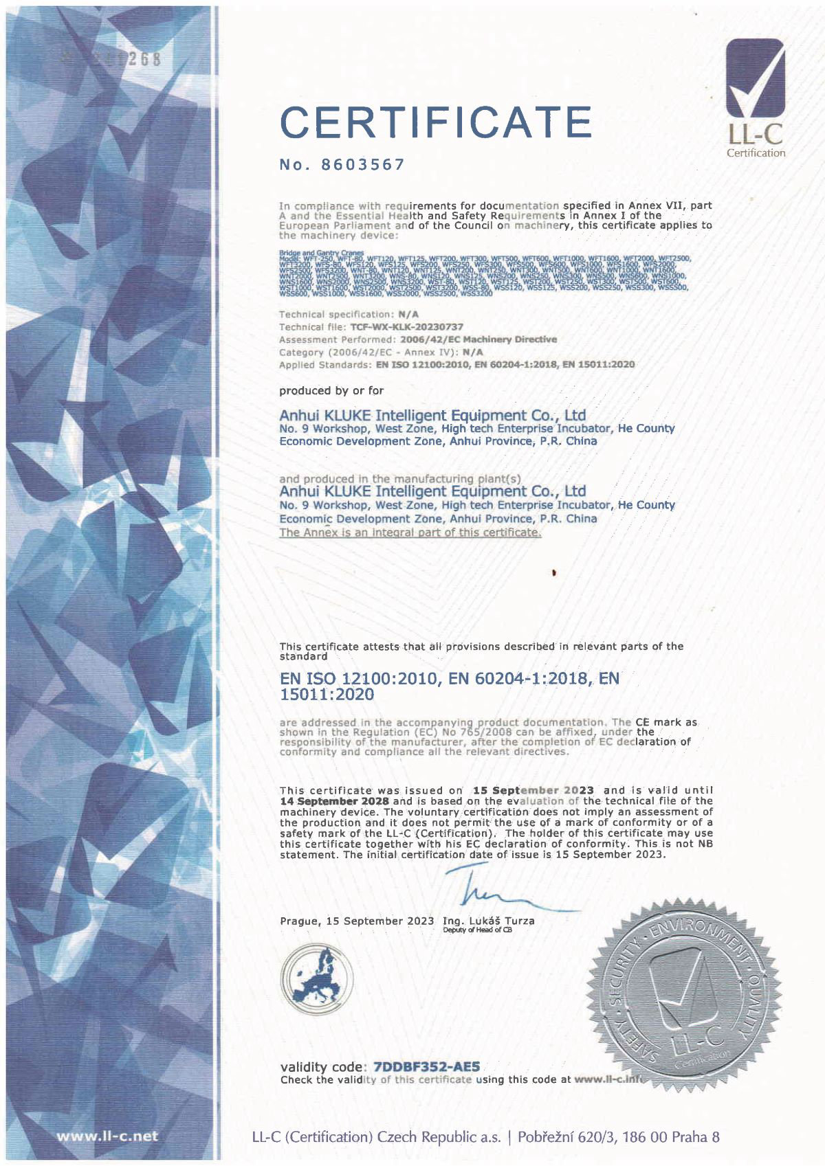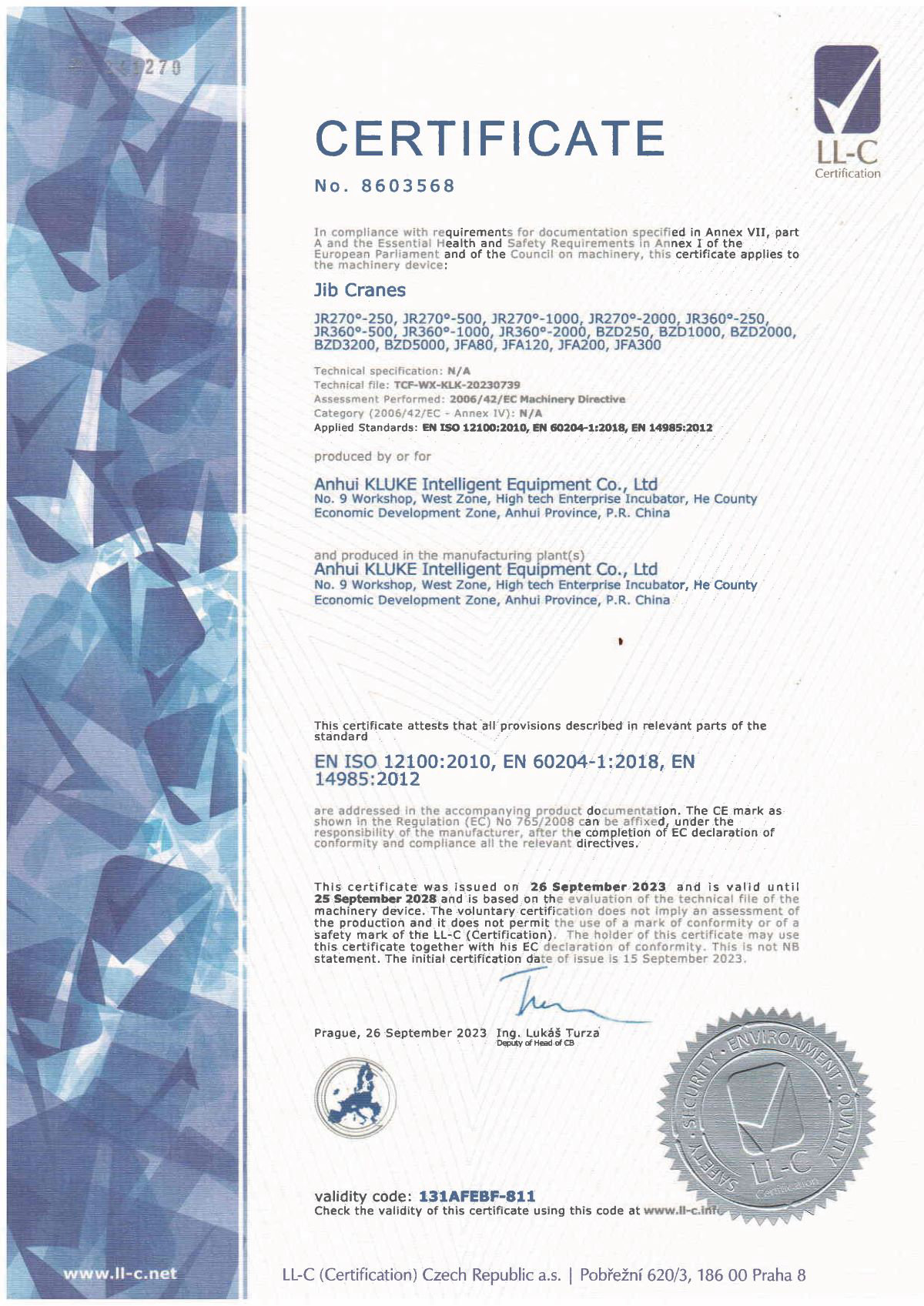 近日,KLUKE克魯克機(jī)電設(shè)備有限公司自主研發(fā)的剛性軌道系統(tǒng)、懸臂系統(tǒng)順利通過了歐盟CE認(rèn)證,獲準(zhǔn)在歐盟市場進(jìn)行上市銷售。該項(xiàng)認(rèn)證標(biāo)志著KLUKE克魯克在輕載起重系統(tǒng)領(lǐng)域優(yōu)秀的研發(fā)能力和卓越的產(chǎn)品質(zhì)量得到了國際權(quán)威機(jī)構(gòu)的認(rèn)可與肯定。同年,克魯克與世界五百強(qiáng)之一的綜合性保險(xiǎn)公司——中國太平洋保險(xiǎn)(集團(tuán))股份有限公司達(dá)成戰(zhàn)略合作,簽署全球產(chǎn)品責(zé)任險(xiǎn)保單,攜手為國內(nèi)外客戶保駕護(hù)航,賦能中國智造。